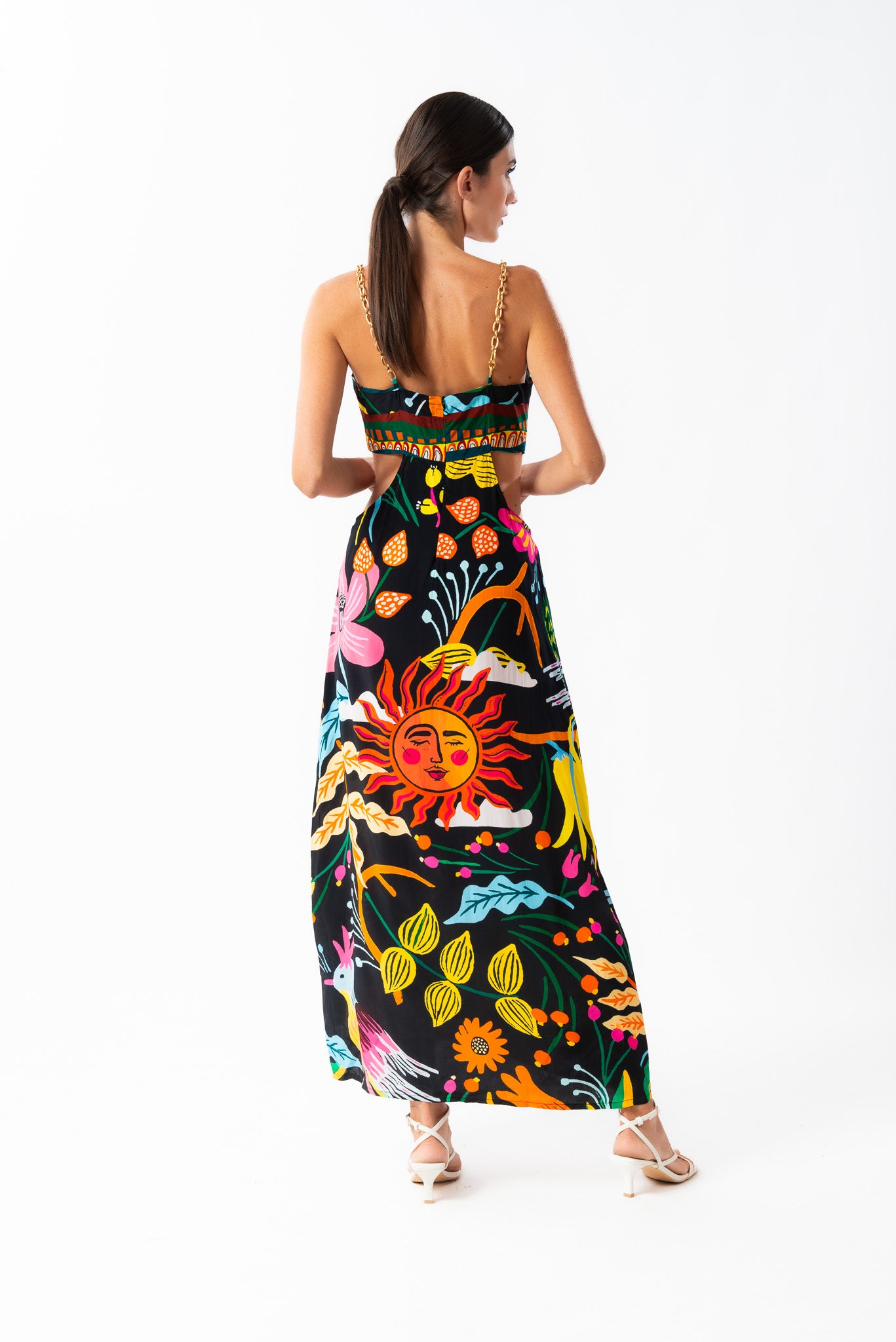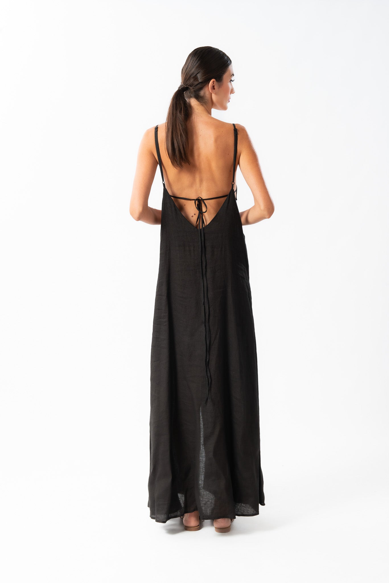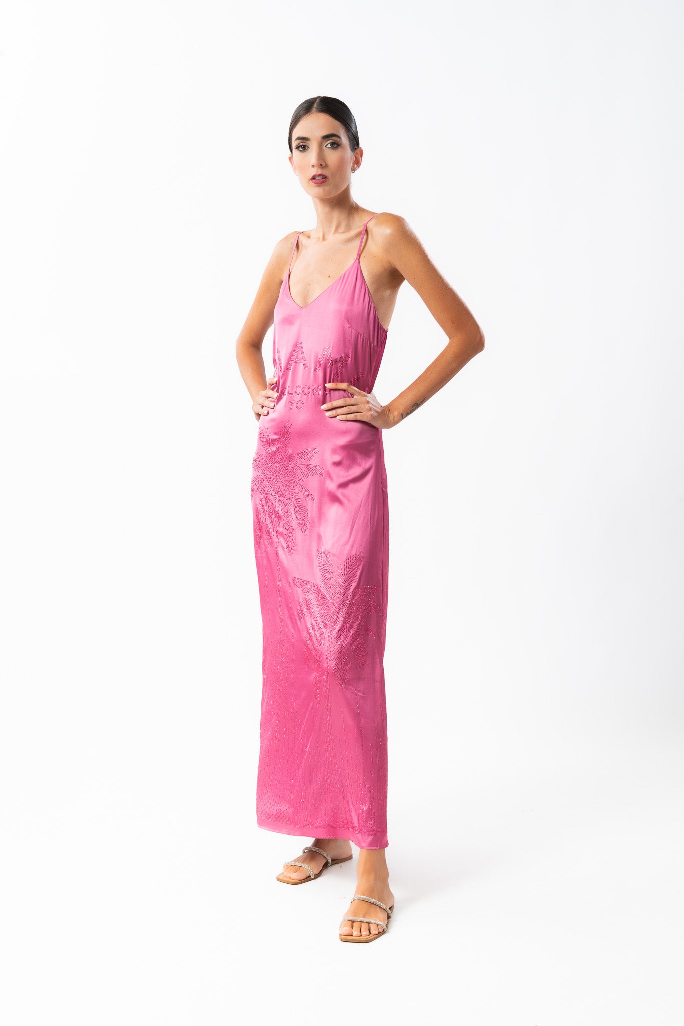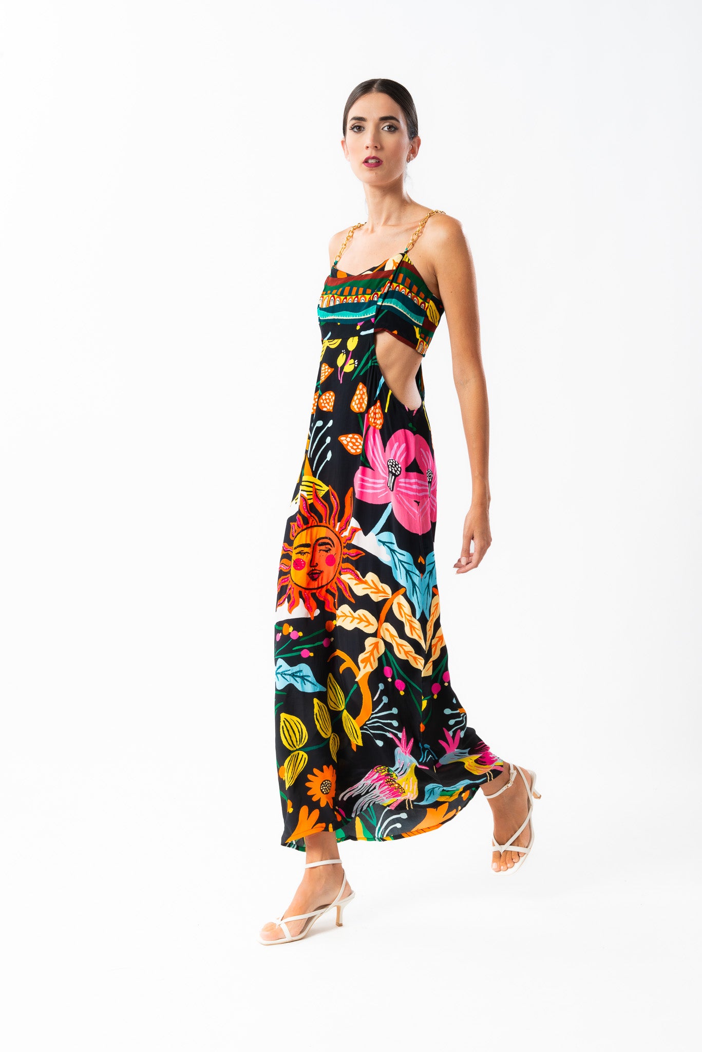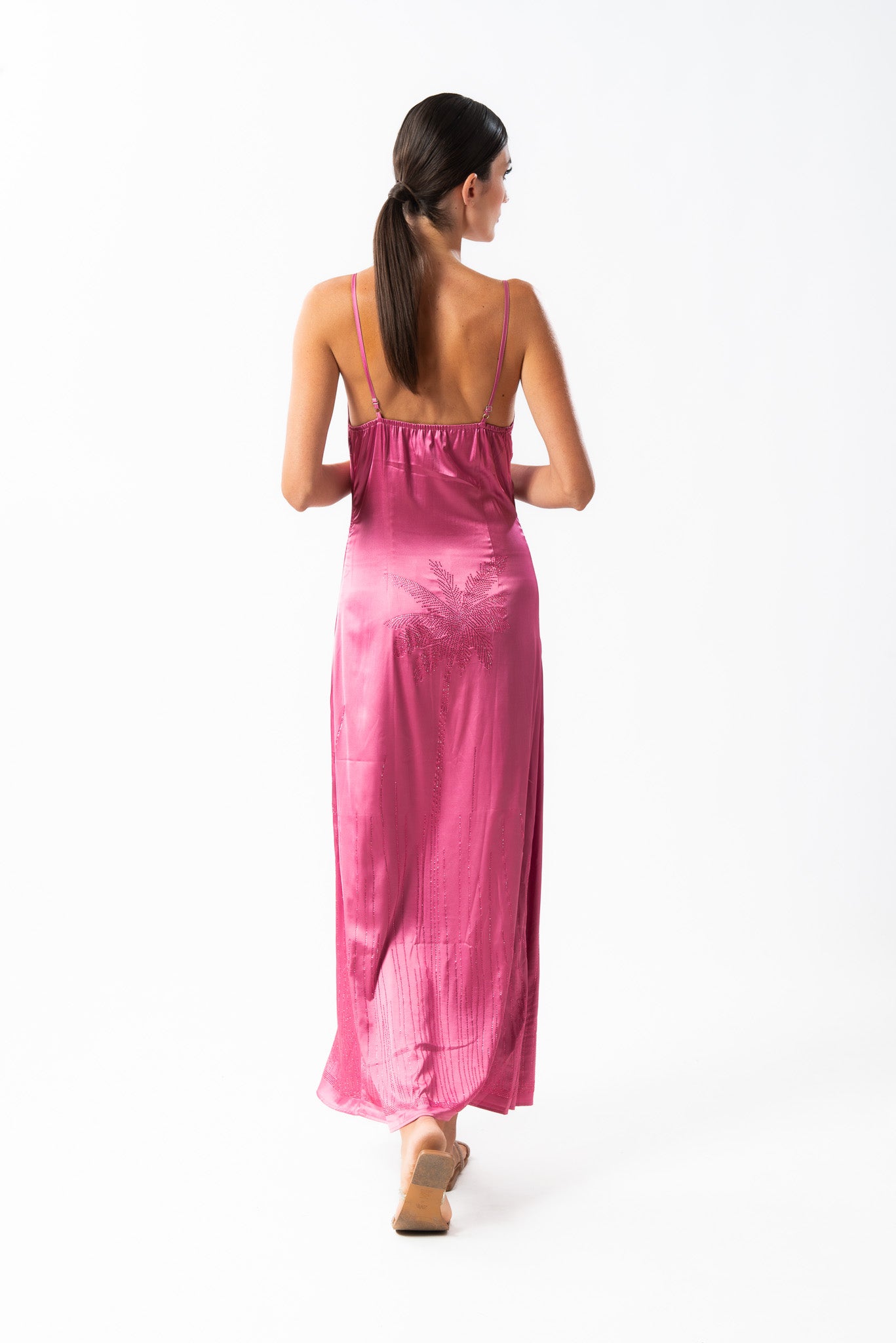 ABITO LUNGO SVASATO CON FIORE RICAMATO