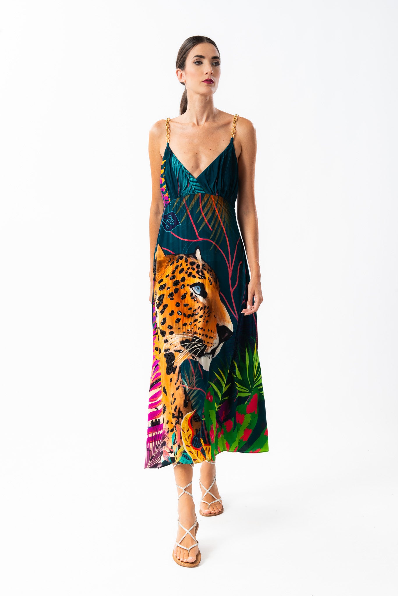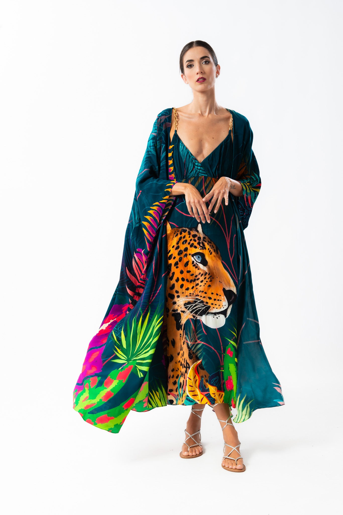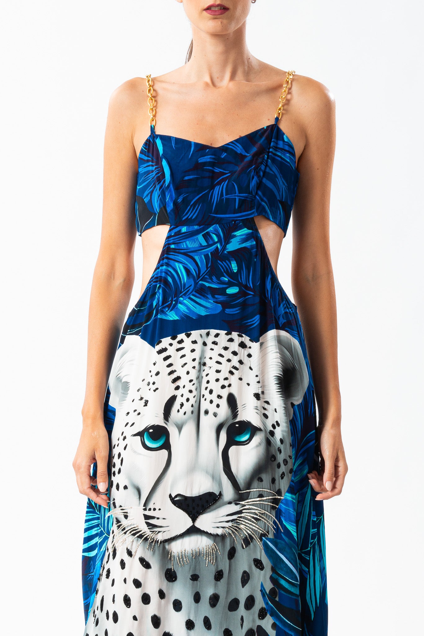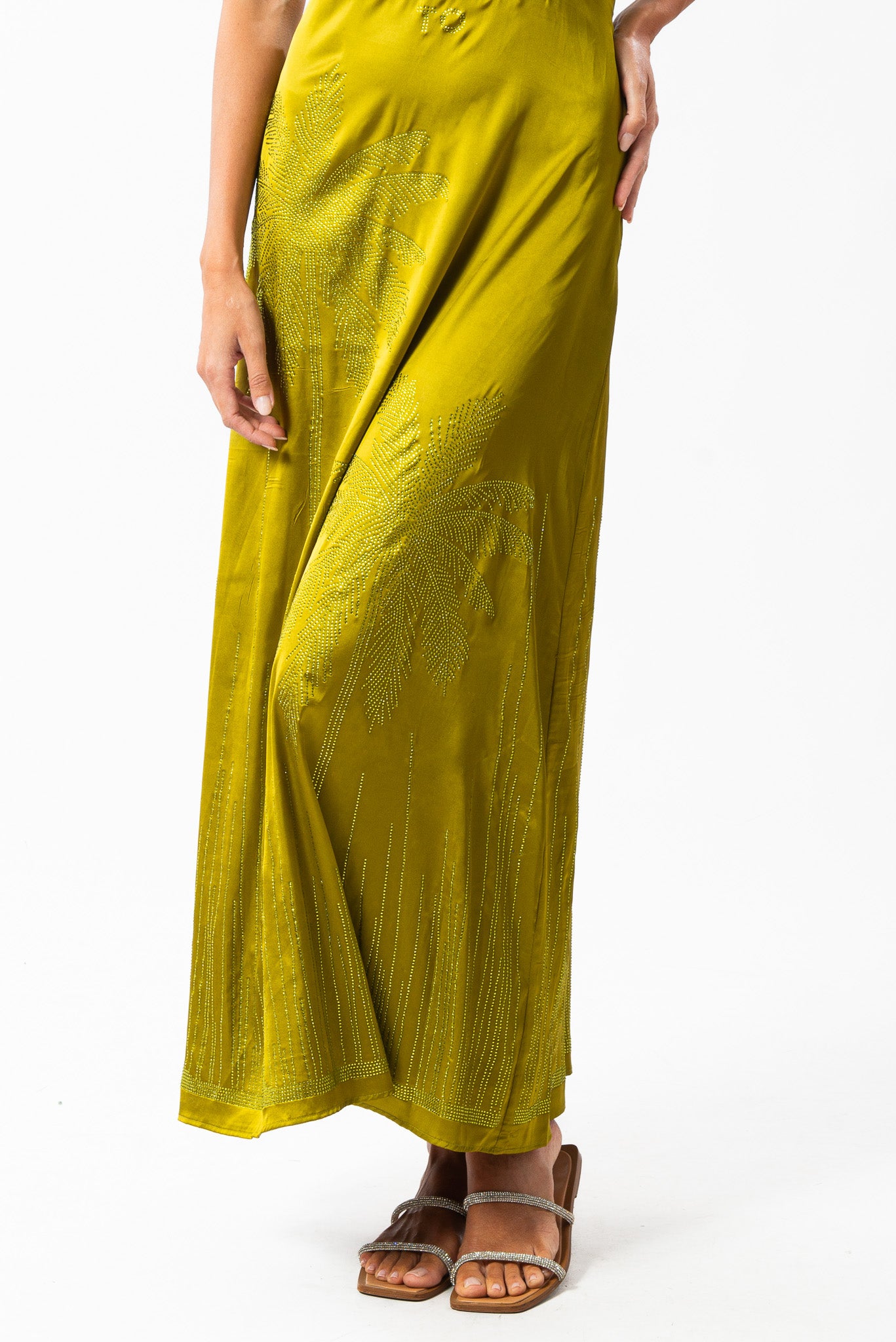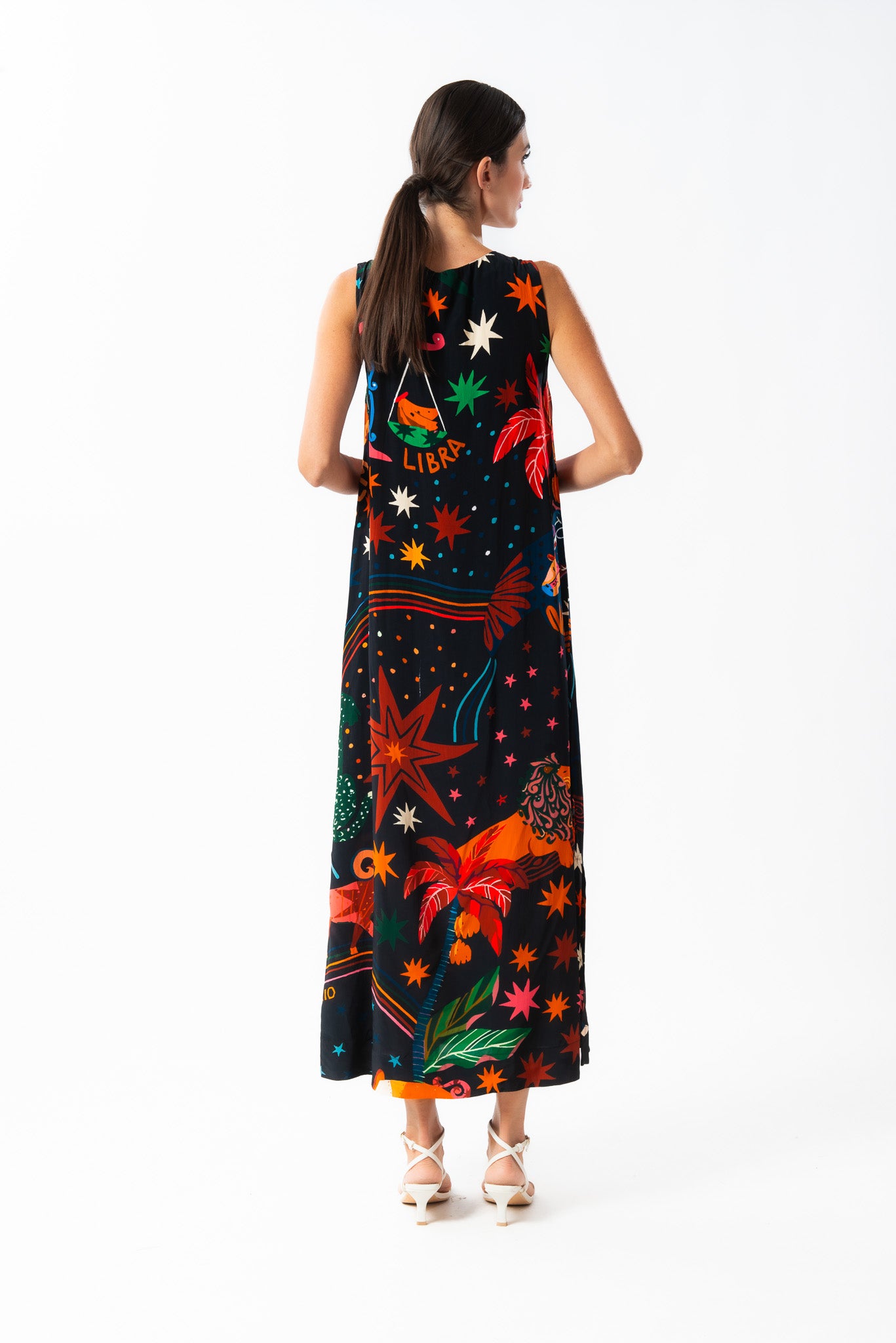 ABITO LUNGO SVASATO CON FIORE RICAMATO