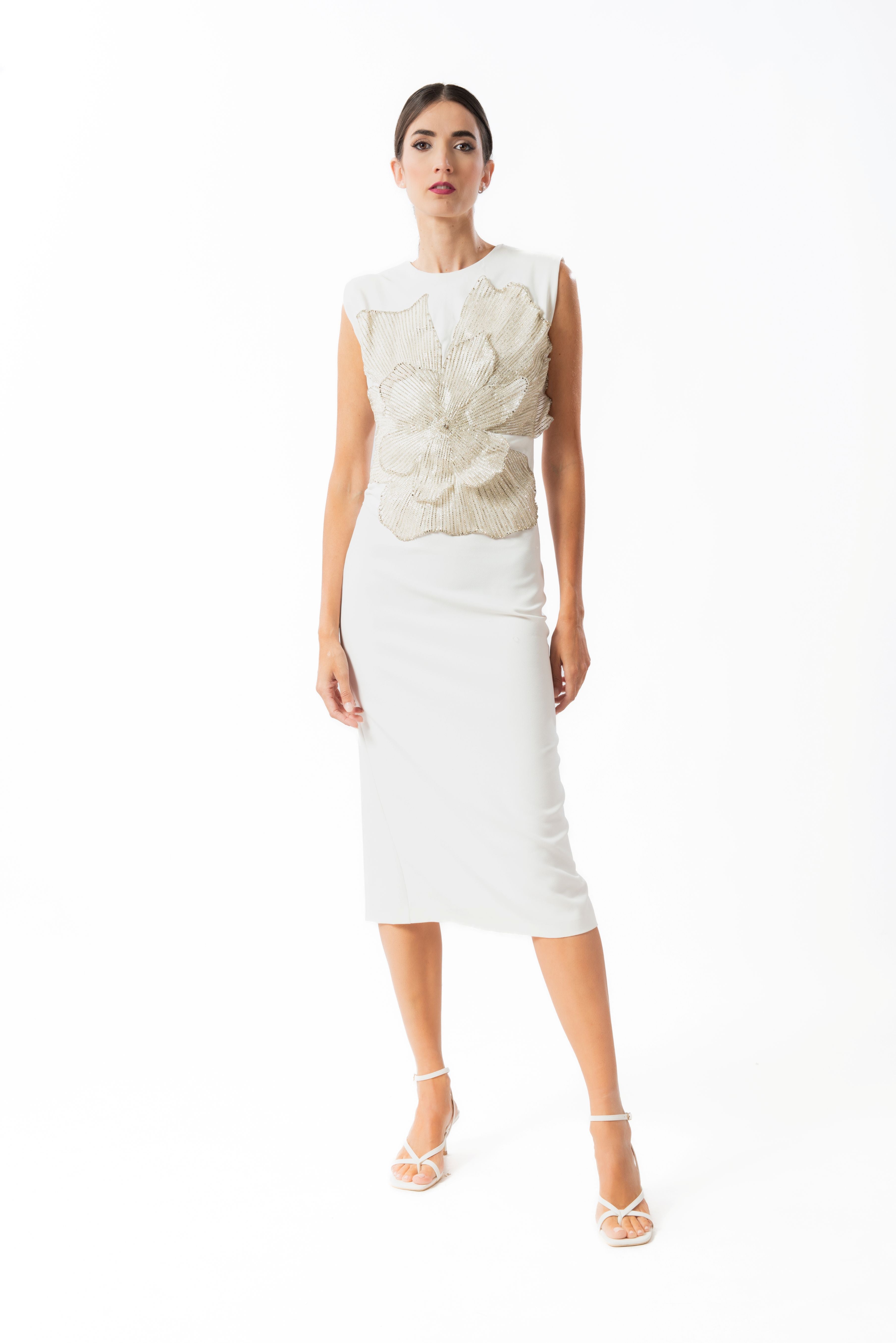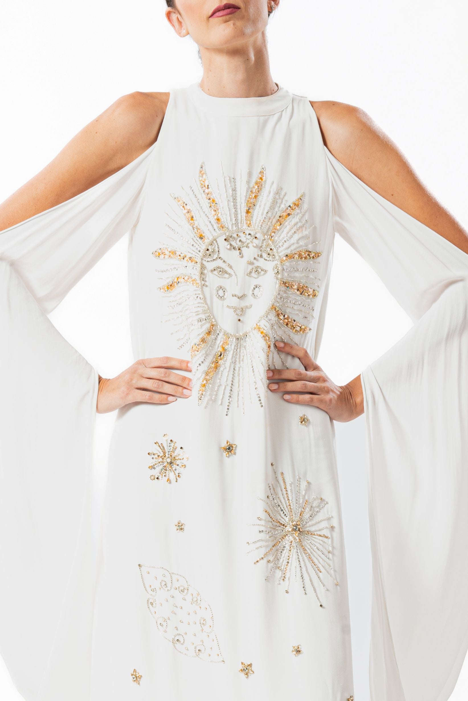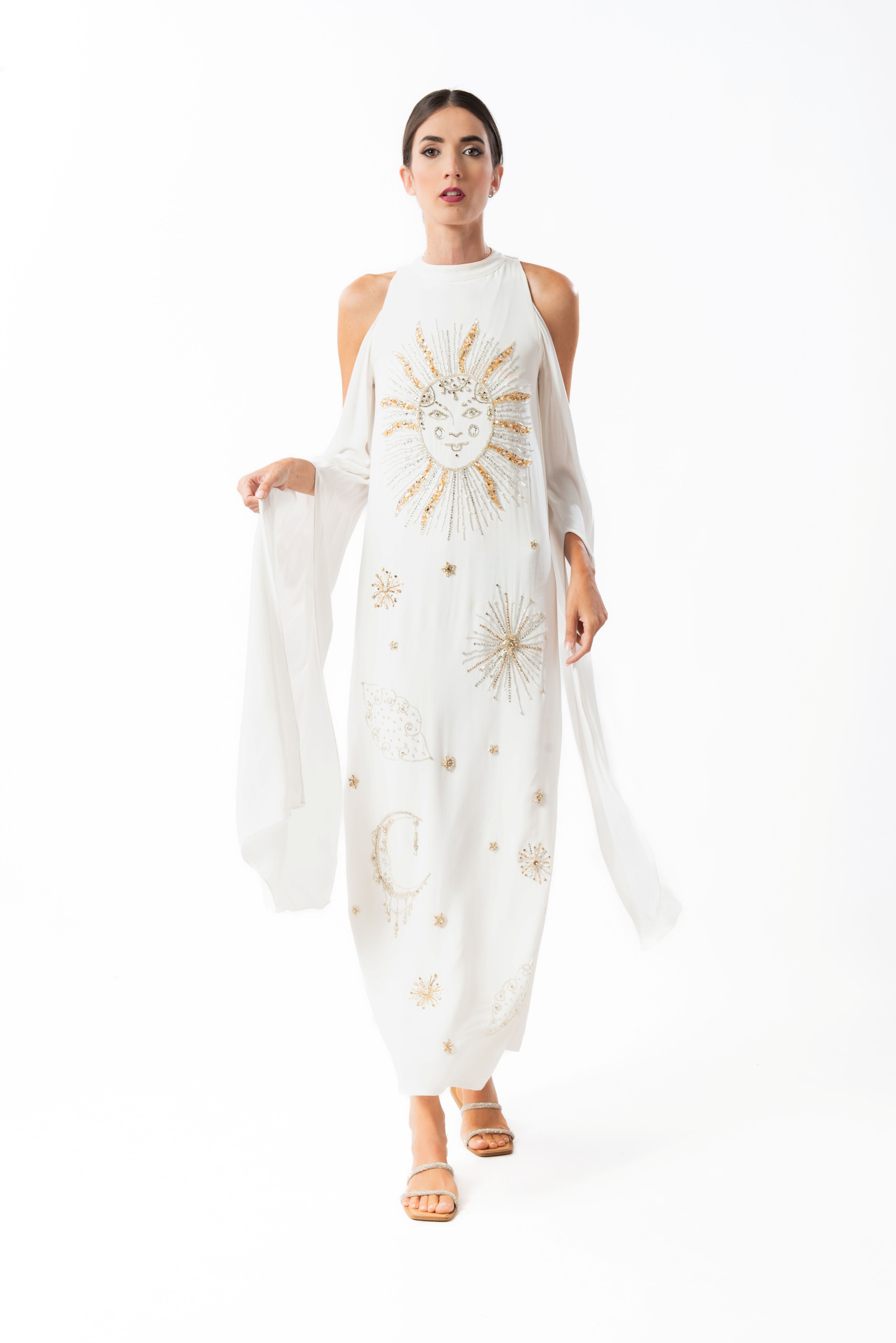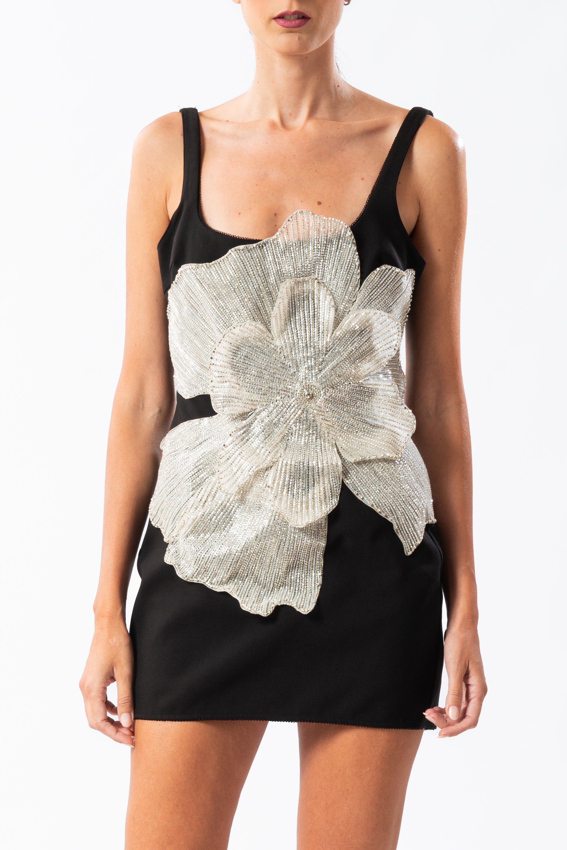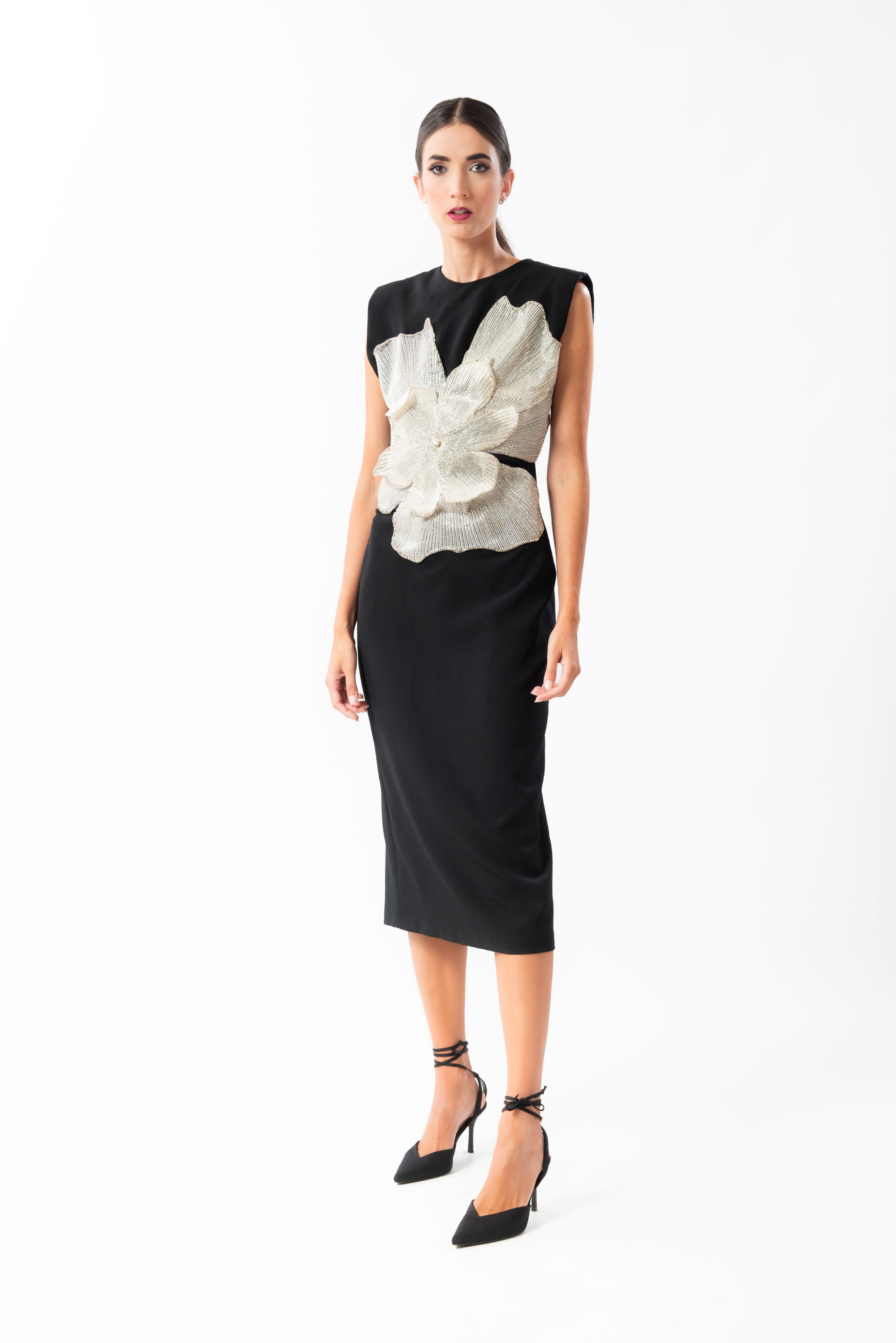 ABITO LUNGO SVASATO CON FIORE RICAMATO