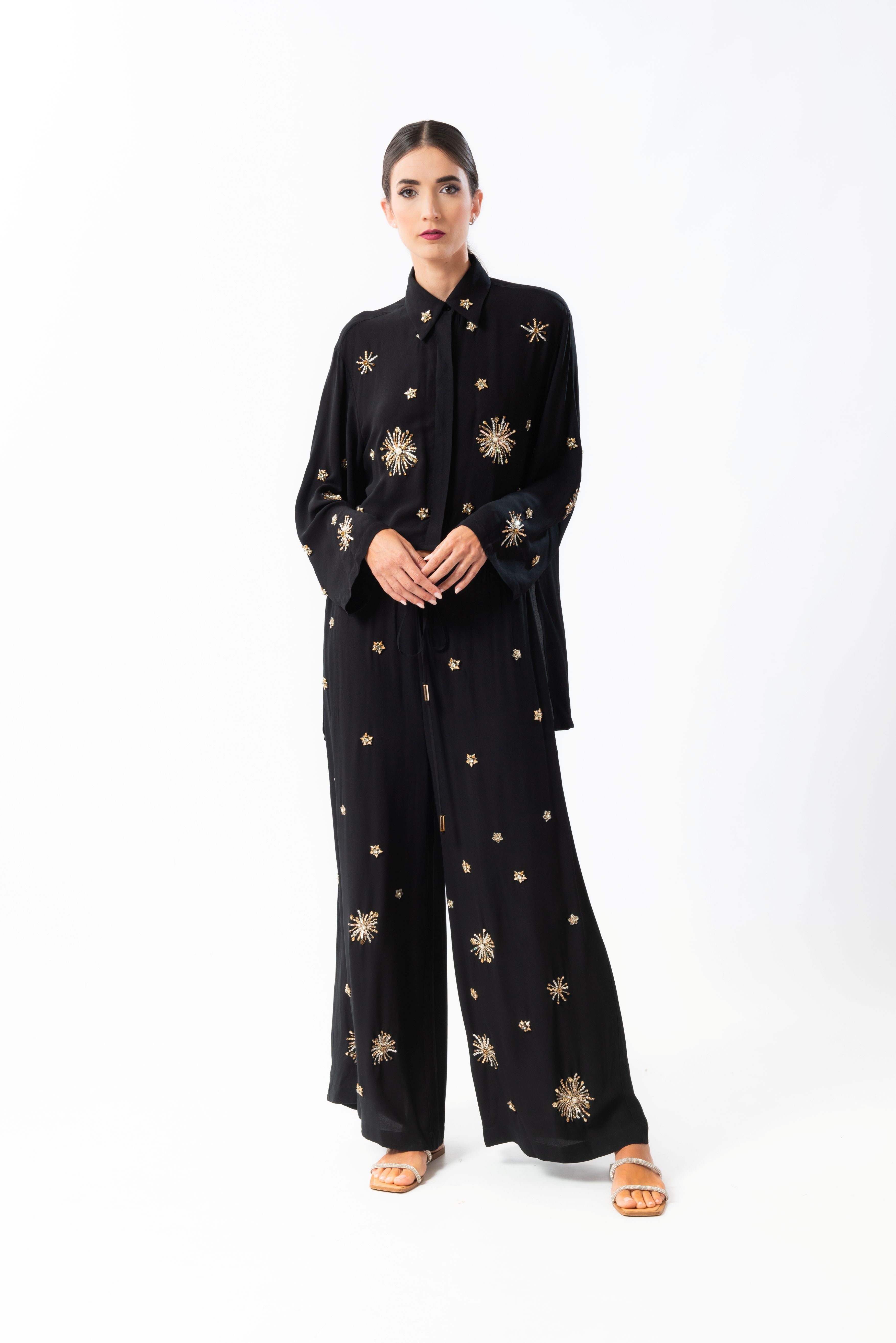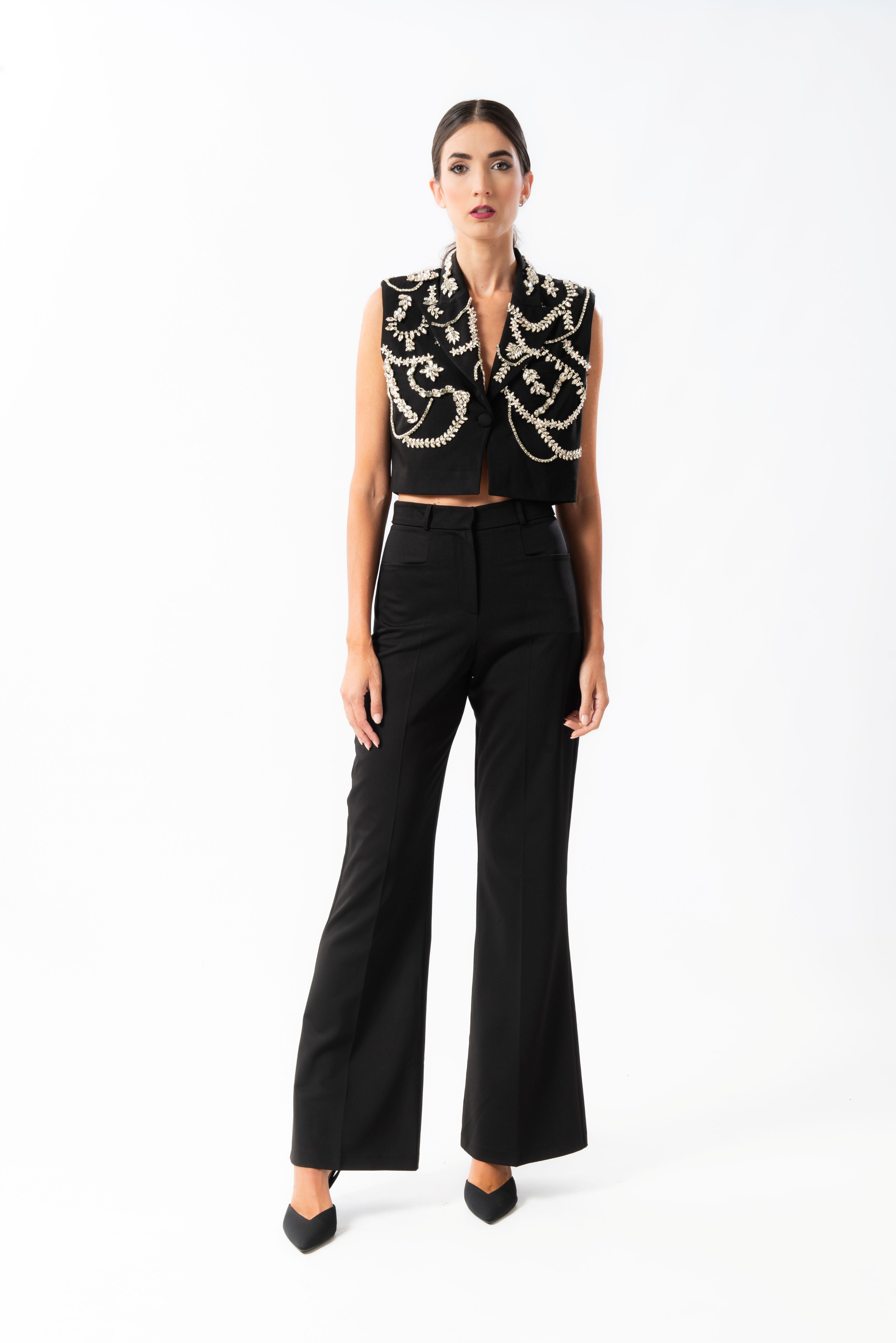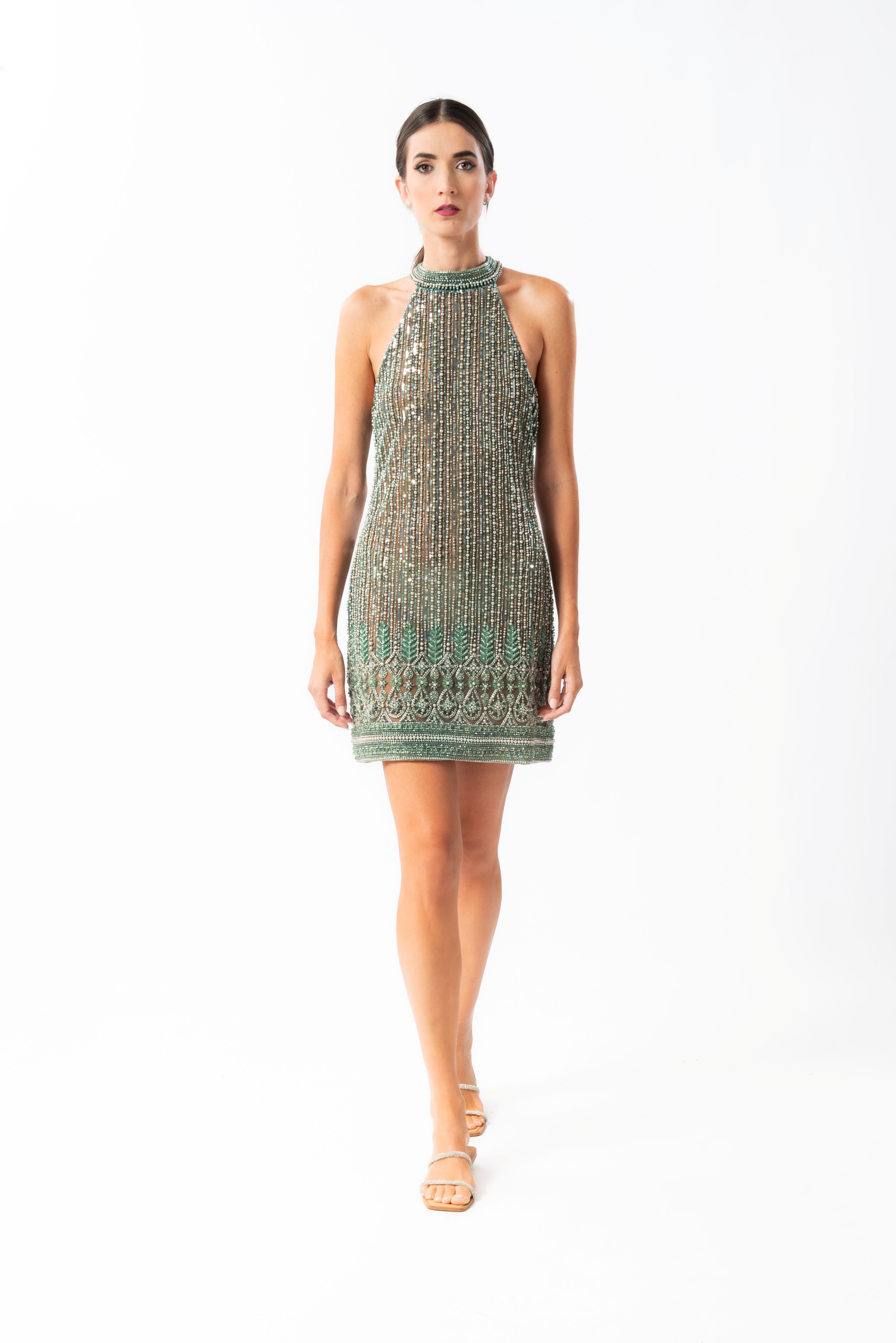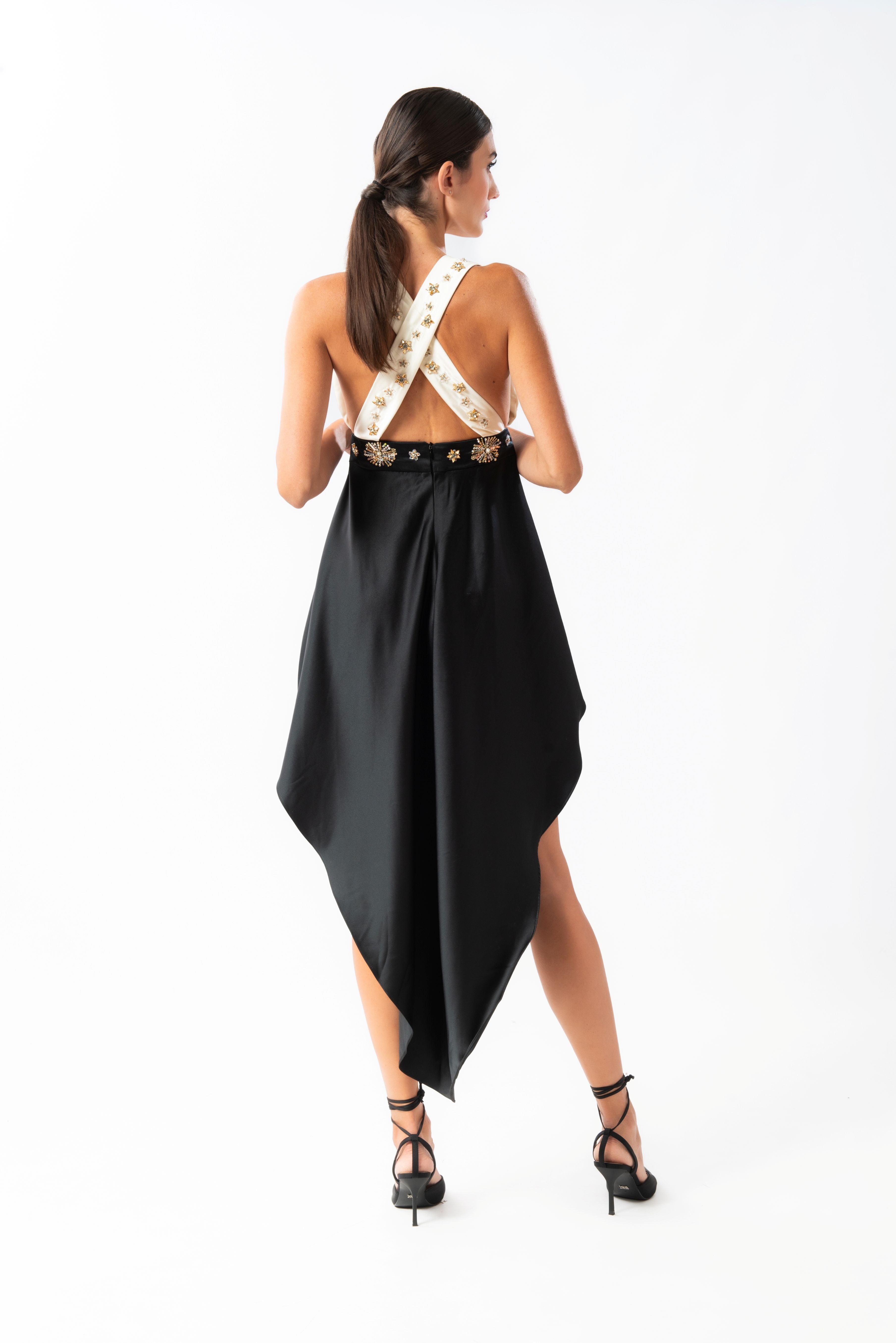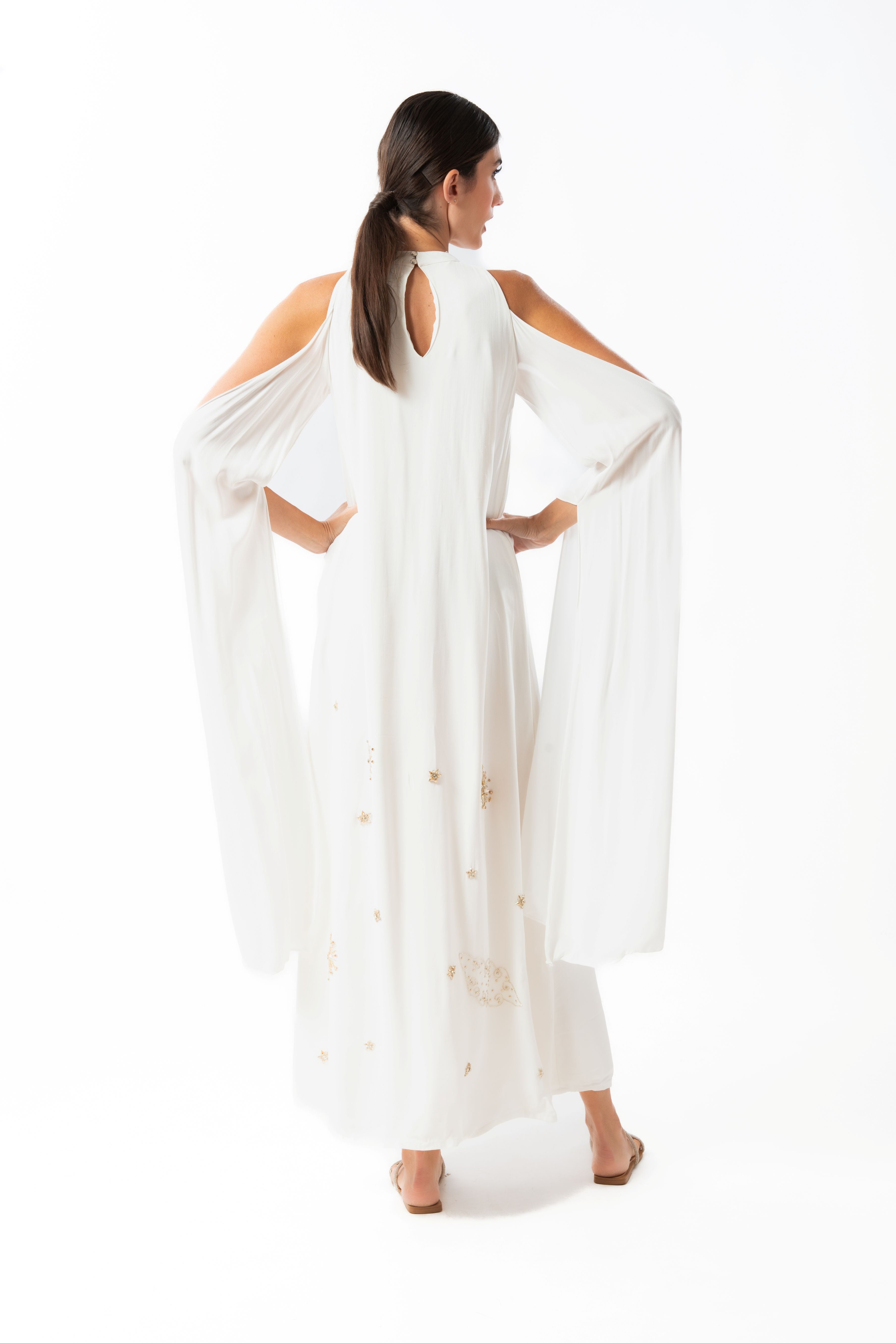ABITO LUNGO SVASATO CON FIORE RICAMATO