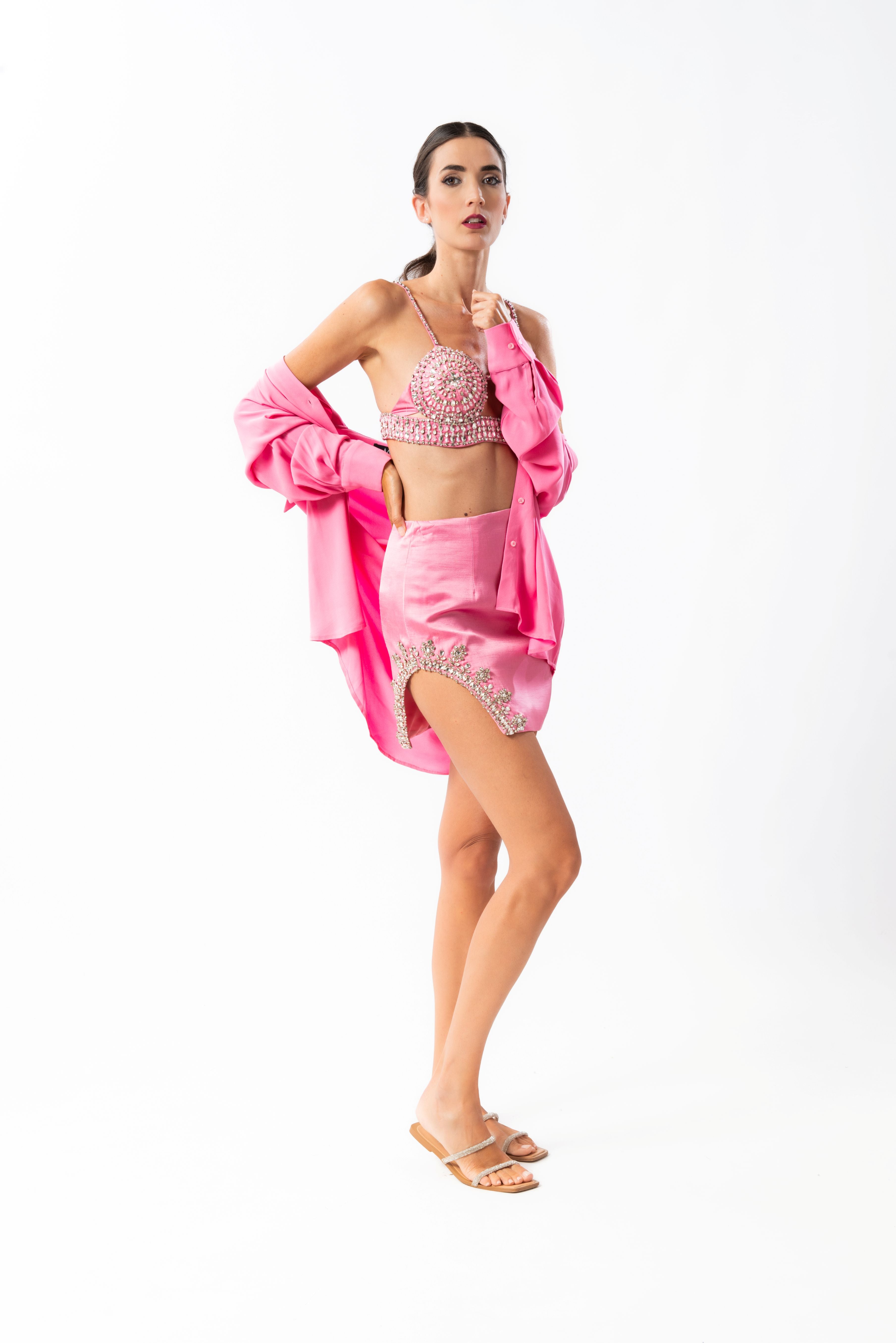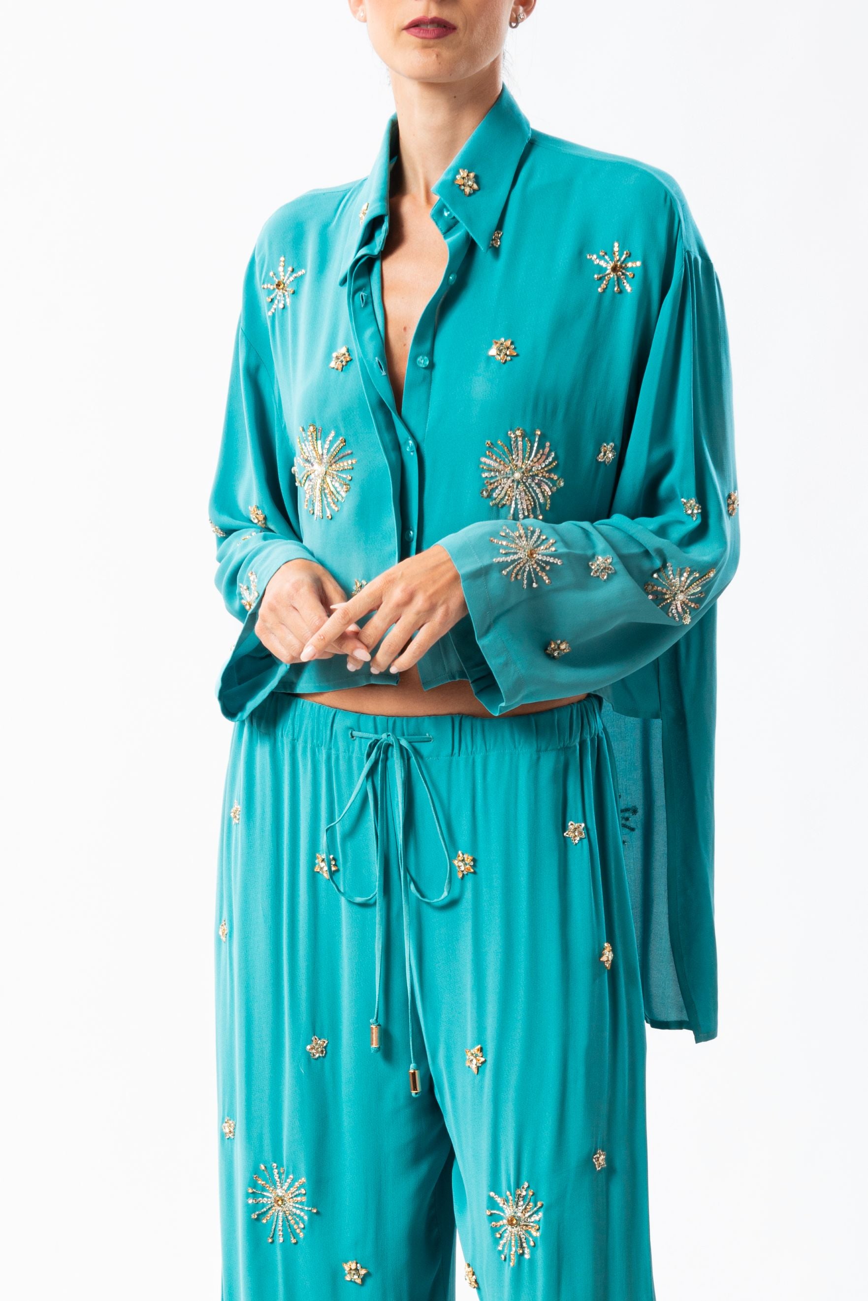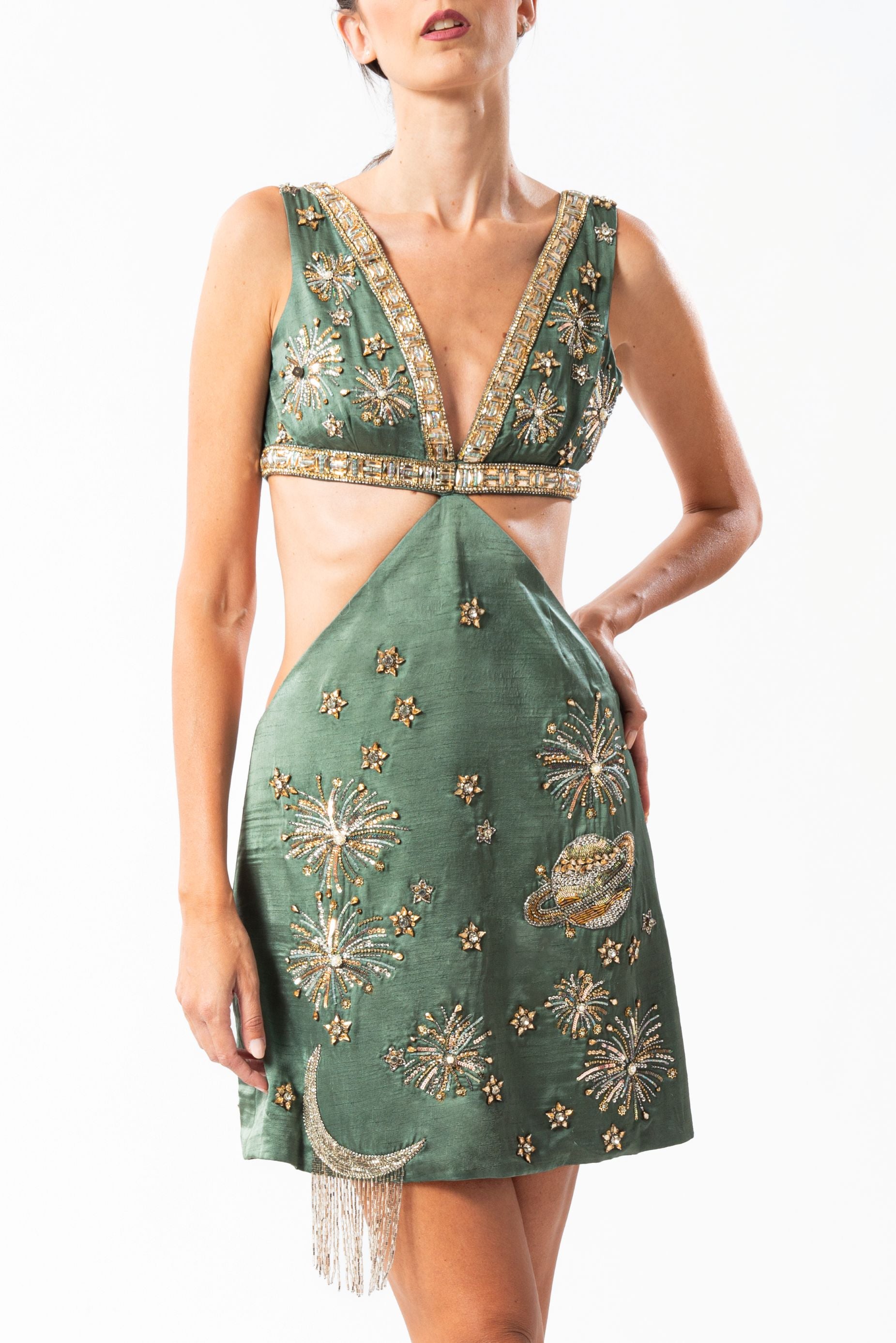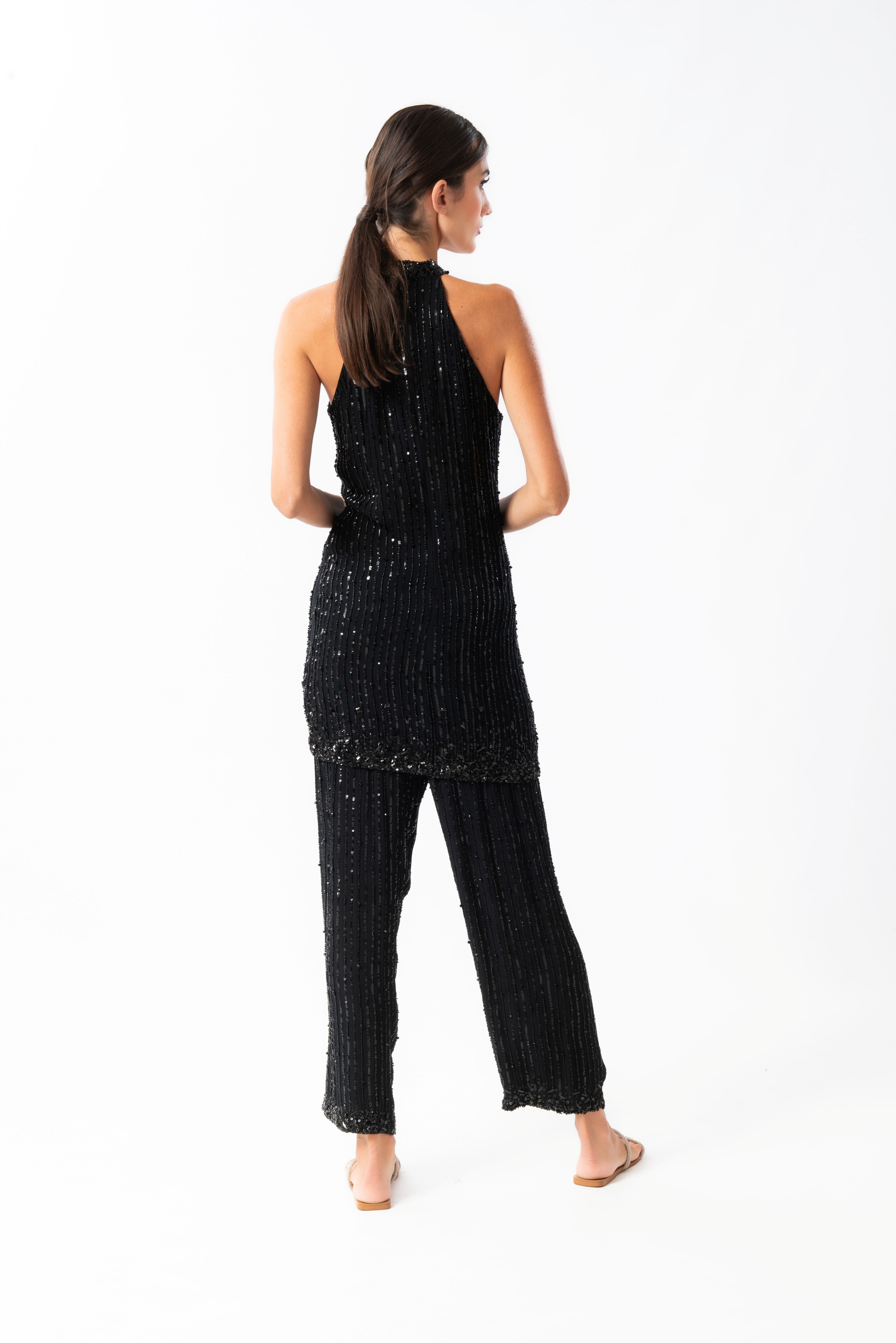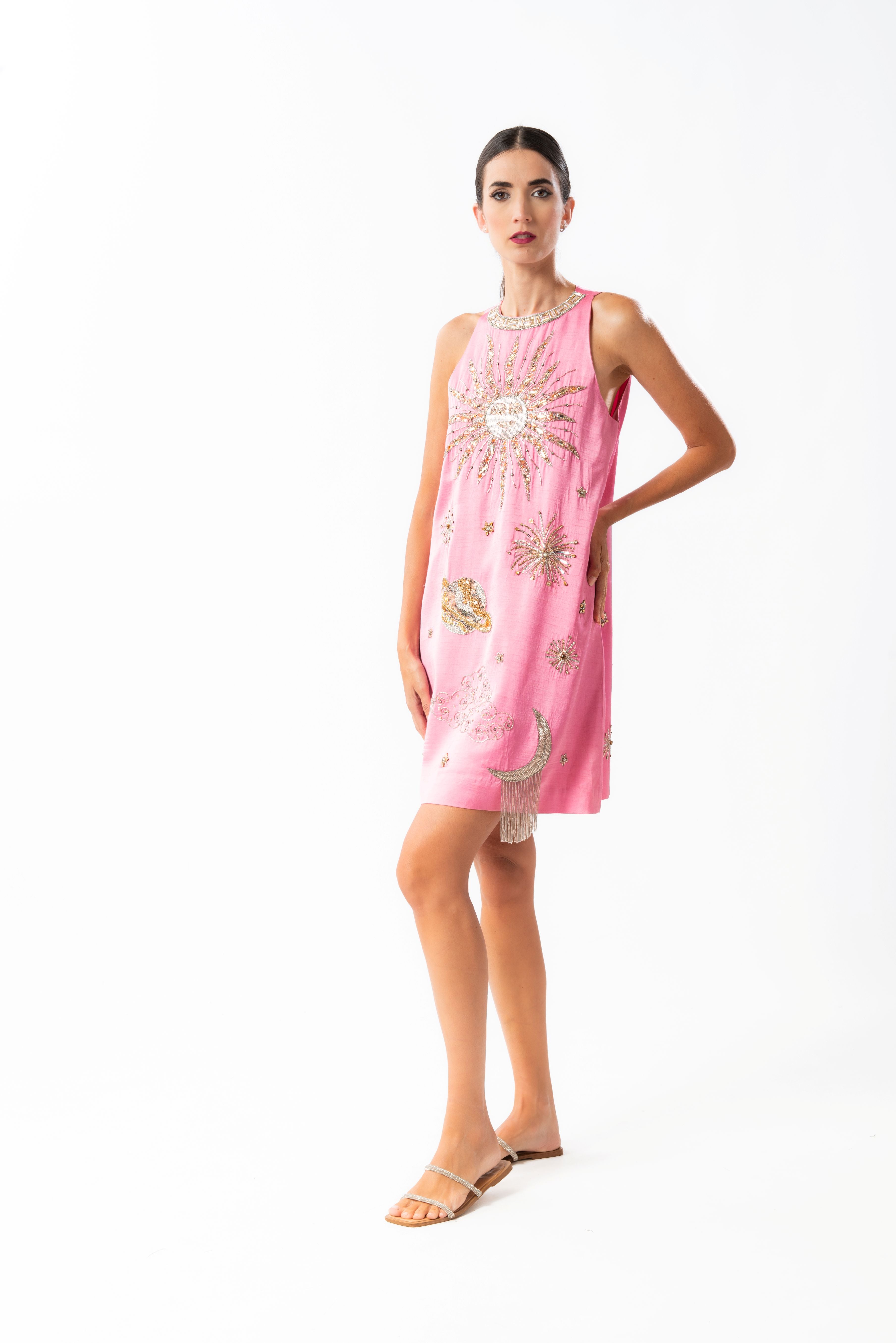 ABITO LUNGO SVASATO CON FIORE RICAMATO