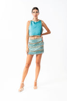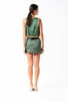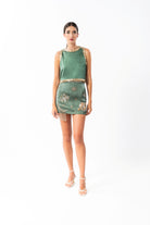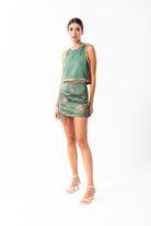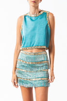 Taglio dritto studiato per offrire una vestibilità perfetta, il top avvolge la silhouette con leggerezza e senza costrizioni. Il girocollo impreziosito da una lavorazione minuziosa di micro-perline e inserti geometrici aggiunge un tocco regale e luminoso. La struttura smanicata perfetta per esaltare le spalle con classe ed equilibrio. Un capo di grande impatto visivo, ideale per chi desidera un look ricercato.