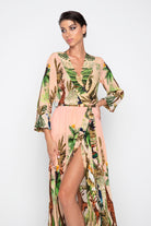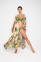 L’abito portafoglio, con maniche a 3/4 e lunga gonna, può essere indossato aperto come copricostume sui nostri bellissimi bikini o trikini in lurex, per una festa in barca e non passare inosservate, o per una semplice passeggiata al tramonto sulla spiaggia. L’ampio spacco lo rende leggero e fresco.
