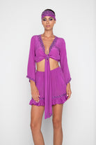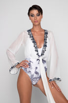 New entry per la collezione Spring Summer 2022: il top annidato con maniche larghe a tre quarti, preziosamente ricamate sul bordo. Presentato sugli short, sui pantaloni e sulla gonna, si adatta a qualsiasi look.