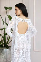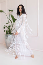 Abito crochet lungo, non foderato, con frange e tassel sullo scollo a V della schiena. Bellissimo come copricostume, fantastico pe un party sulla spiaggia. Disponibile nel colore bianco e nel nero.