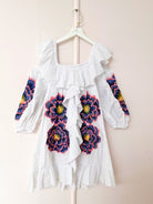 Leziosità e leggerezza per questo Minidress in cotone con stampa floreale.