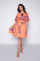100% lino per questo abito ricamato, completo di cintura, con manica a sbuffo in versione unica.
