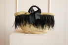 Borsa media in paglia con piume e cristalli
