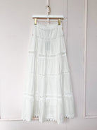 Gonna lunga della serie "Madrid" foderata 100% cotone con intarsi in pizzo tono su tono.