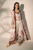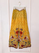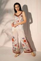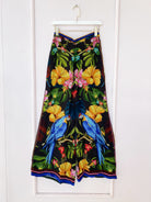 Pantalone in seta jaquard e viscosa, leggerissimo. Modello palazzo, con molla in vita. Vestibilità morbida.