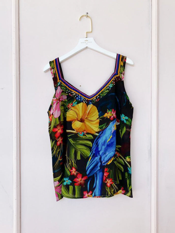 La leggerezza del tessuto ed il modello con spallina larga, lo rendono portabilissimo anche sotto una giacca.