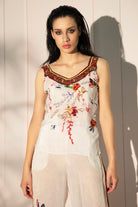 Top in seta e viscosa, stampa flloreale.