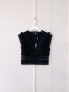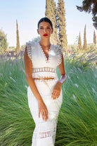 Gonna venduta in abbinamento al suo top, nei colori bianco e nero, 100% cotone con inserti in pizzo.
