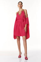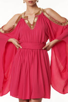 Abito corto progettato per mettere in risalto la tua femminilità con uno stile raffinato e dettagli brillanti. Lo scollo a V accentua il décolleté, conferendo un tocco di seduzione. La cinta in vita sottolinea la silhouette, contribuendo a una vestibilità su misura e enfatizzando la grazia del corpo. Ricami preziosi e lucenti rifiniscono e valorizzano il taglio delle spalle e la scollatura, creando un look irresistibile.