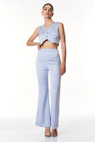 Cristalli mini ricoprono i pantaloni a zampa, creando un effetto scintillante che aggiunge un tocco di glamour al tuo look. Realizzati con cura e attenzione ai dettagli che assicurano una vestibilità perfetta.