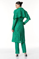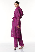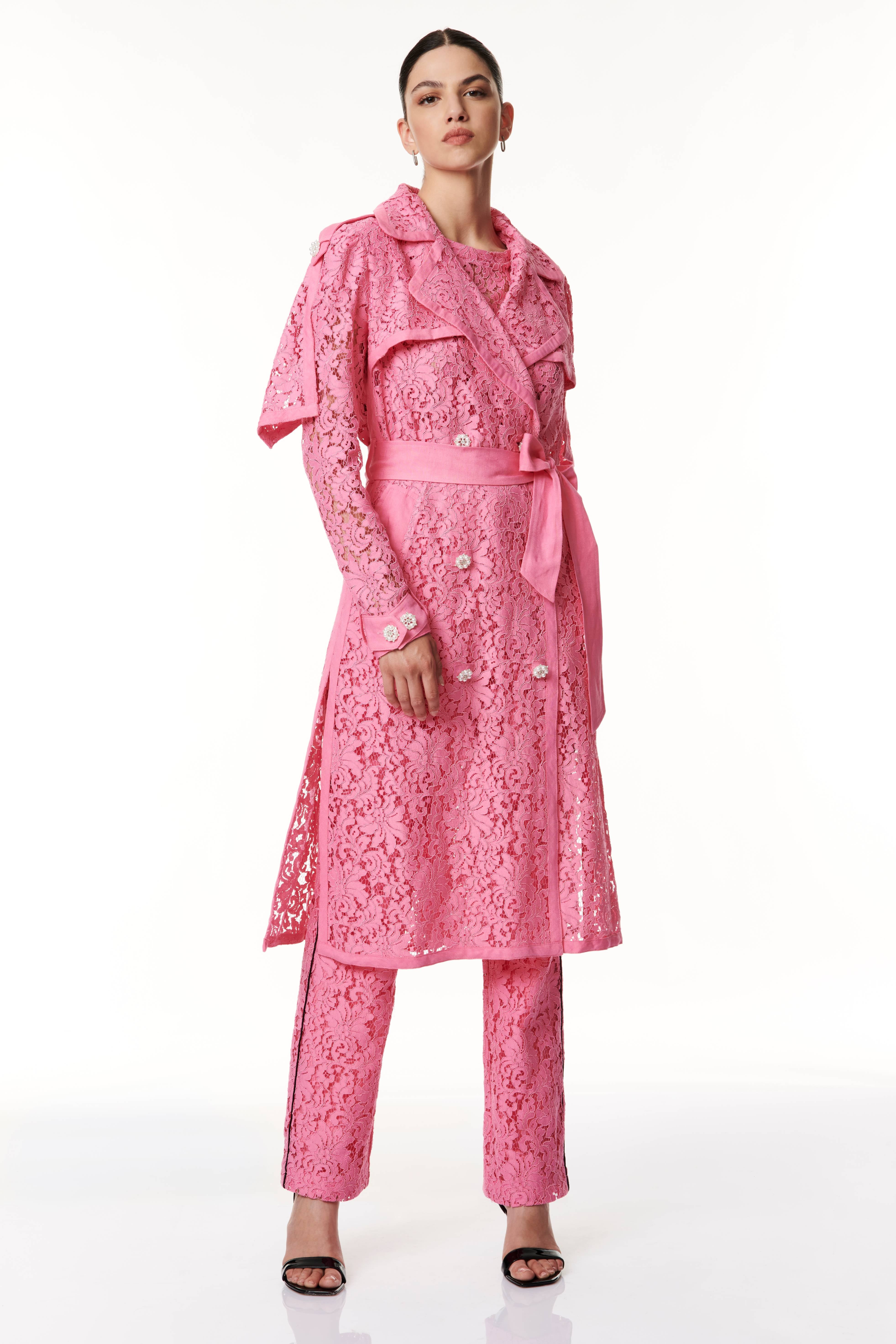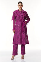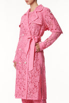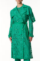 Esalta la tua femminilità con questo trench in pizzo, un capo straordinario che fonde la classe senza tempo del trench con l'eleganza sofisticata del pizzo. Caratterizzato da spalle con taglio raglan, mostrine sulle spalle e sui polsini con bottoni gioiello, il carrè dietro a mantella aggiunge un tocco di mistero. L'abbottonatura doppiopetto con bottoni gioiello, il collo a revers, sottolineano la raffinatezza, mentre la cintura in vita di lino dona un tocco di freschezza e definisce la silhouette con eleganza. Con una lunghezza sotto il ginocchio, questo trench è un'opera d'arte di stile che ti accompagnerà con grazia in ogni occasione.
