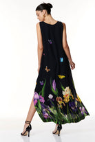 L’abito lungo smanicato ha un linea pulita che fluisce con grazia, offrendo un look sofisticato. Lo scollo a barchetta rifinito con minuziose perline e dettagli come ricami di paillettes scintillanti, perle delicate, cristalli raffinati e piume leggere rendono questo abito un'opera d'arte da indossare.