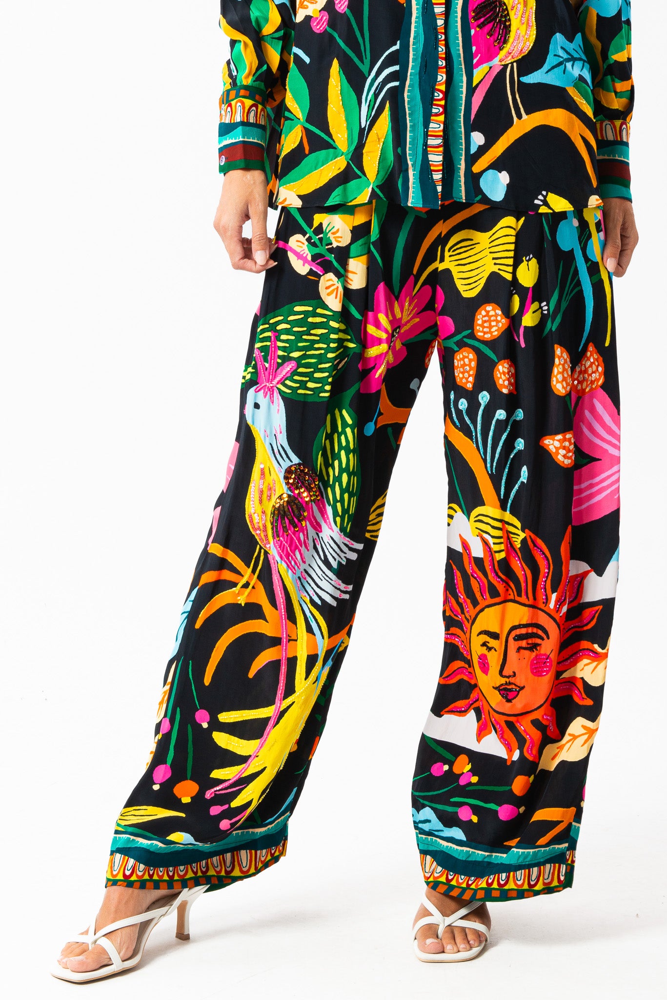 PANTALONE PALAZZO CON BANDA LATERALE RICAMATA