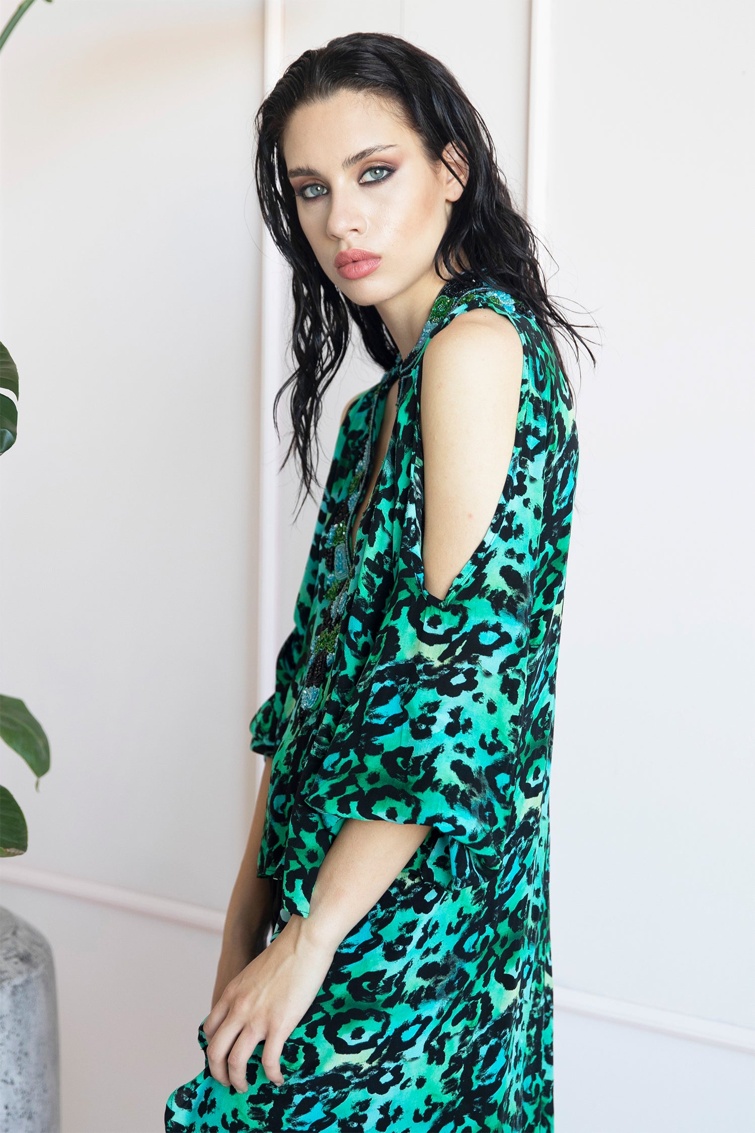The cut on her shoulders gives a touch of sensuality to the woman who wears it.