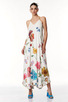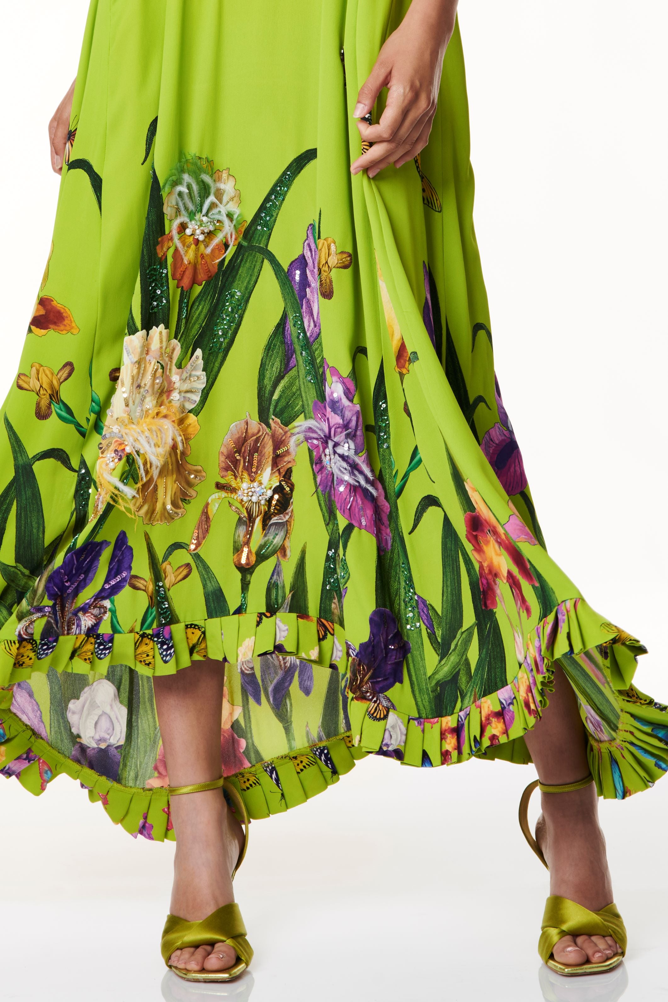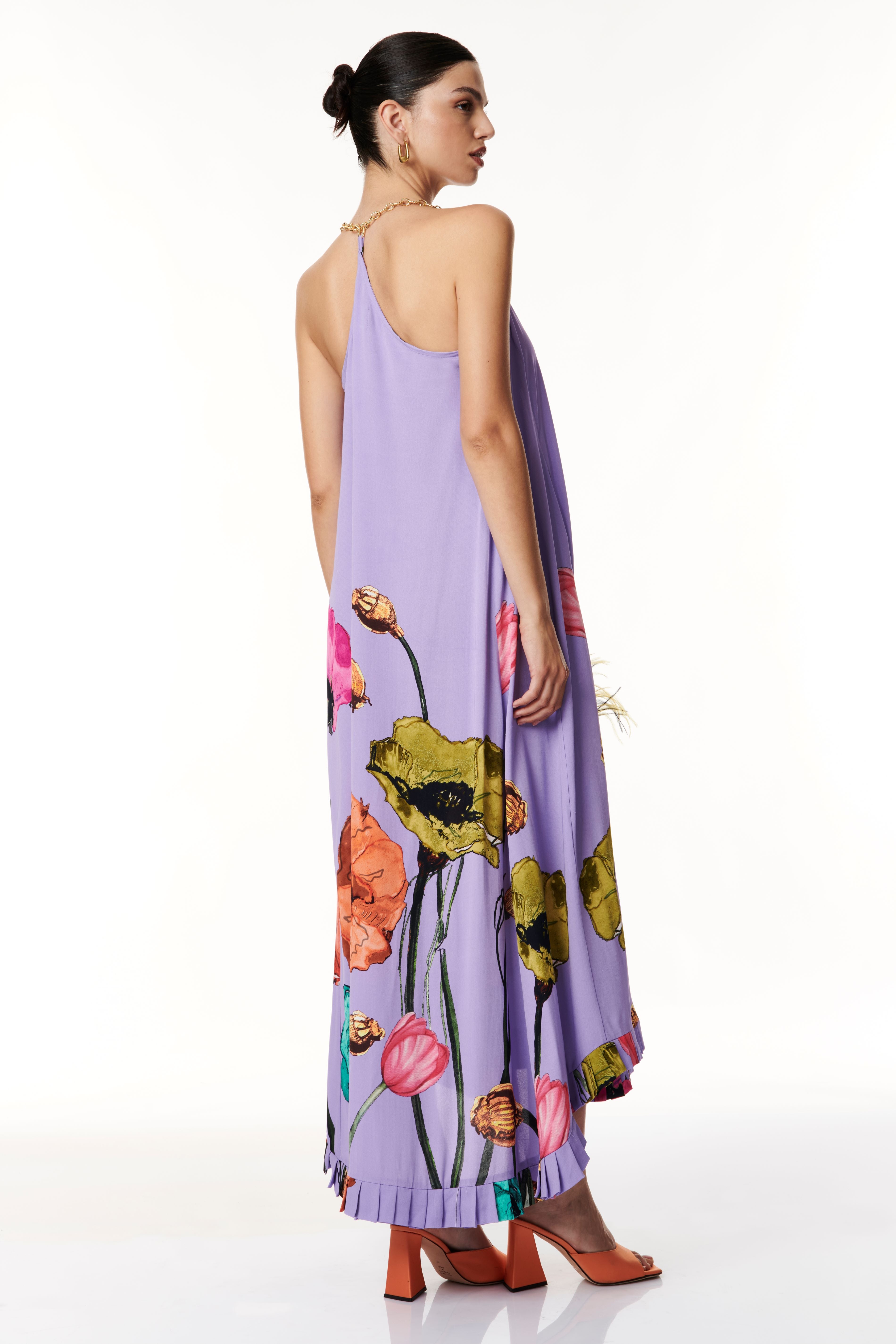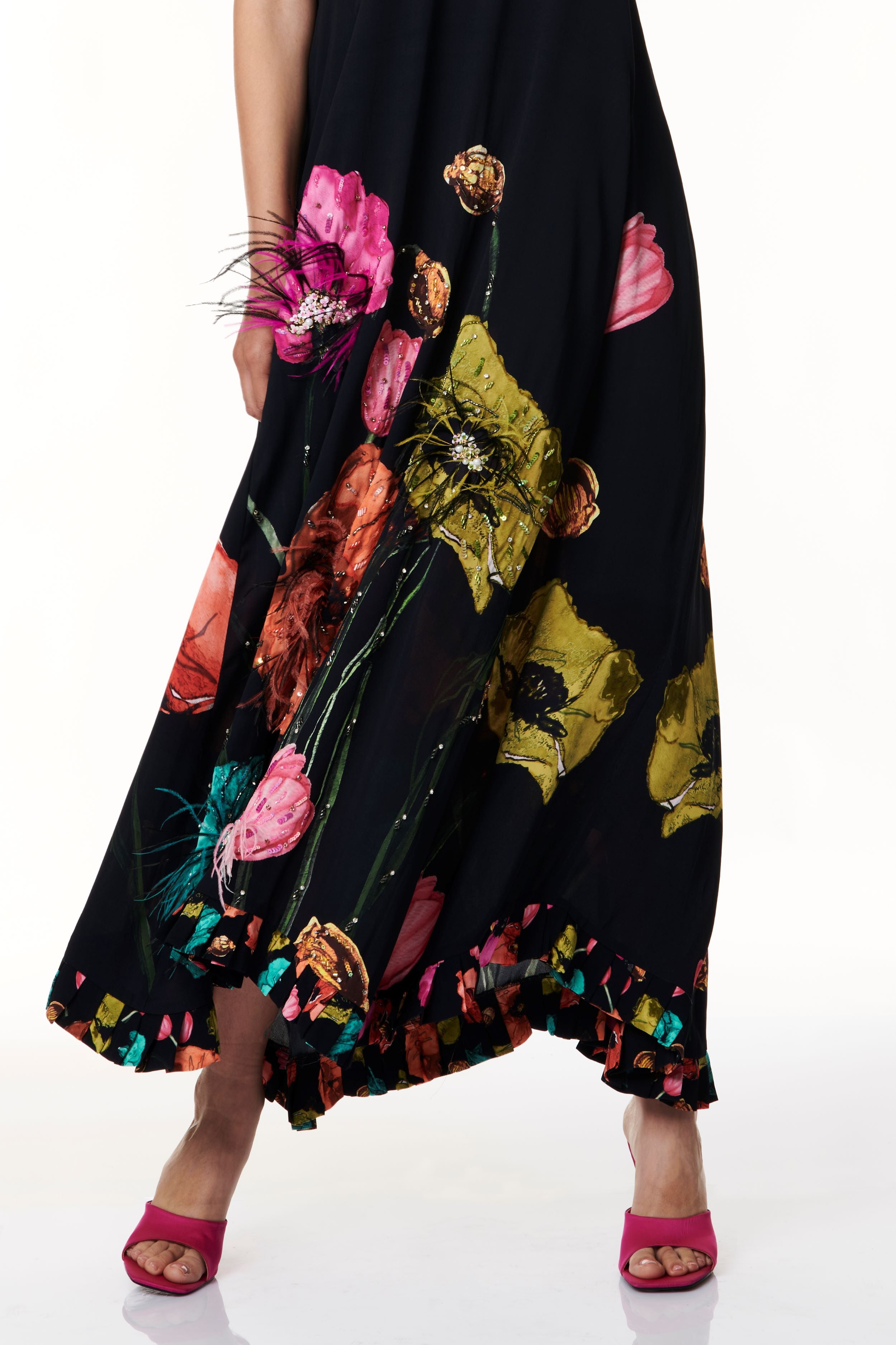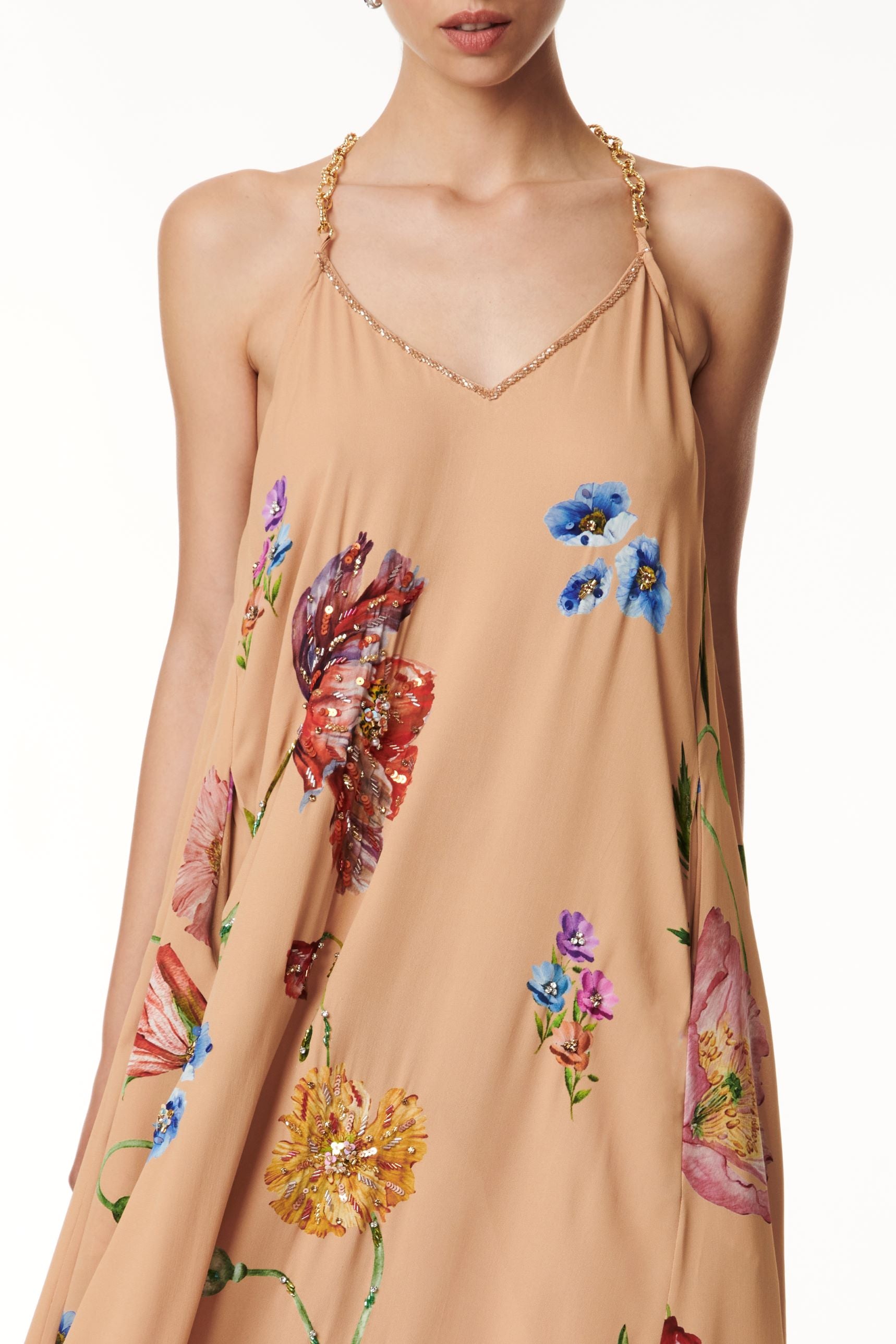 Risplendi in ogni occasione con questo lungo abito, un capo che incarna l'eleganza e la sofisticatezza. Le bretelline a catena oro aggiungono un tocco di lusso e raffinatezza, creando un contrasto accurato. Ricco di dettagli ricamati, creano un affascinante effetto tridimensionale rendendo il capo unico. Il design ampio dell'abito assicura anche il massimo comfort durante ogni occasione.